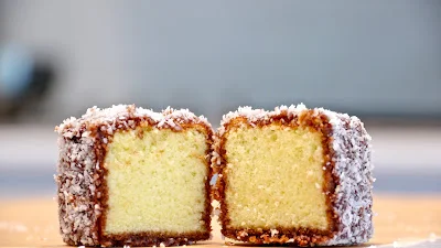 A few years ago I spent a couple months in Australia and was able to travel up and down the eastern coast. I loved the Australian dishes such as meat pies, barramundi (fish and chips), and kebobs. But a favorite snack was lamingtons, little sponge cakes dipped in chocolate and rolled in coconut. The first time I ate a lamington, I was on a river boat tour. We were north of Brisbane and the tour guide brought out some lamingtons for a snack. They were so moist and delicious that we looked for them the rest of our trip everywhere we went. Some lamingtons are plain and some are filled with jam. This version of lamingtons are plain but still delicious.