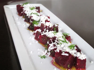 Here is another simple beet salad using vegetables and herbs from the garden. If you are looking for a simple recipe using beets and want to take the flavors in latin direction then this recipe is perfect. I got some great queso fresco at the mexican market in L.A. and had some left over from a latin themed party I did. In this recipe I just wanted to use a few ingredients and let those ingredients really shine together. That is really how this recipe evolved and came about. Nothing to fancy here just having a few ingredients and let them speak for themselves. Sometimes simple dishes are the best.