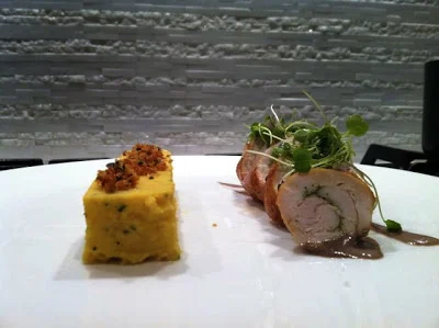 Sous vide Chicken with delicata squash pudding and liver sauce