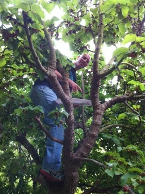 Mulberries are a wonderful fruit that is very comparable to blackberries when fully ripened. The Morus plant is in the moraceae family, with about 10 to 15 different varieties. We have two different varieties growing on the property. We have 3 big morus nigra trees (black mulberry) that are first white, then turn red, and then dark purple or black when fully ripened. They have little hairs all over them as they mature. They are extremely sweet when they are black. A little sour when they are red. We also have another variety of mulberries they grow more like a shrub than on a tree. They are also black but with less hair and are a little smaller. This jam is coming from the morus nigra tree mulberries who produce so many berries it is all to gather them all. The trees are at least 25 feet tall so it isn't easy to reap the produce. I did spend one morning in the tree for about an hour along with our lead groundsman picking these wonderful berries. In about an hour we gathered two full trays of berries. So I have a few different recipes with the mulberries but I will start off with the jam.