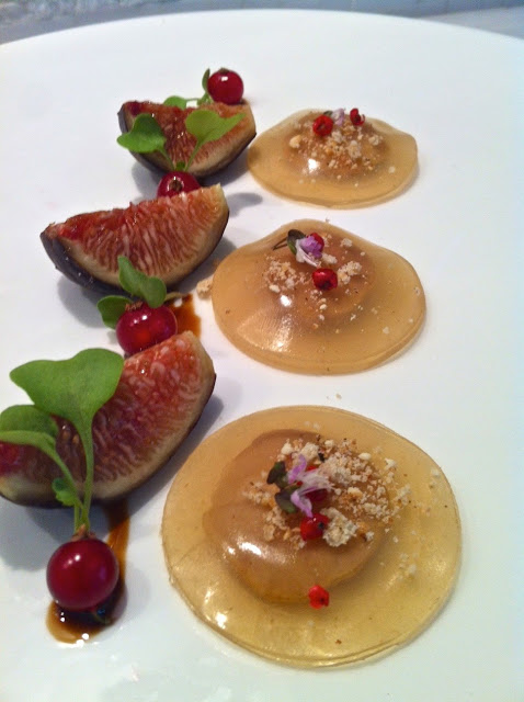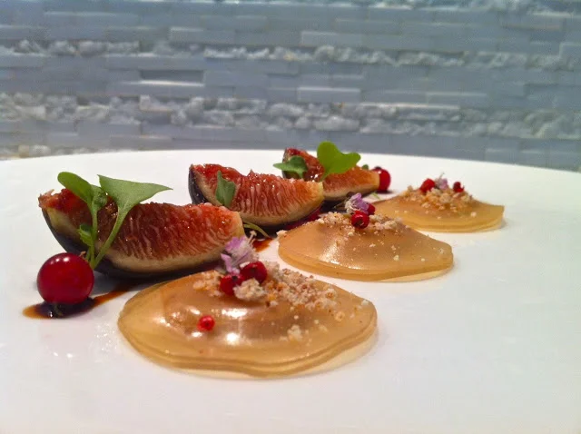Foie gras "Ravioli" with Figs, Currant Leather, and Aged Sherry
