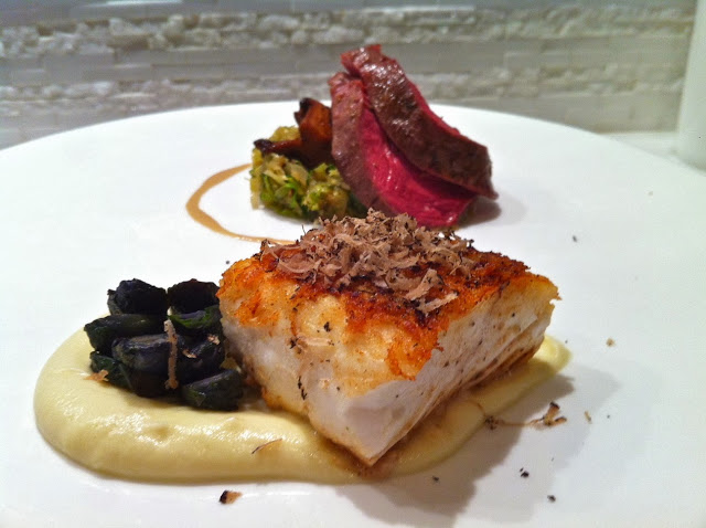 Black Truffle Halibut with Buffalo Tenderloin (Surf and Turf)