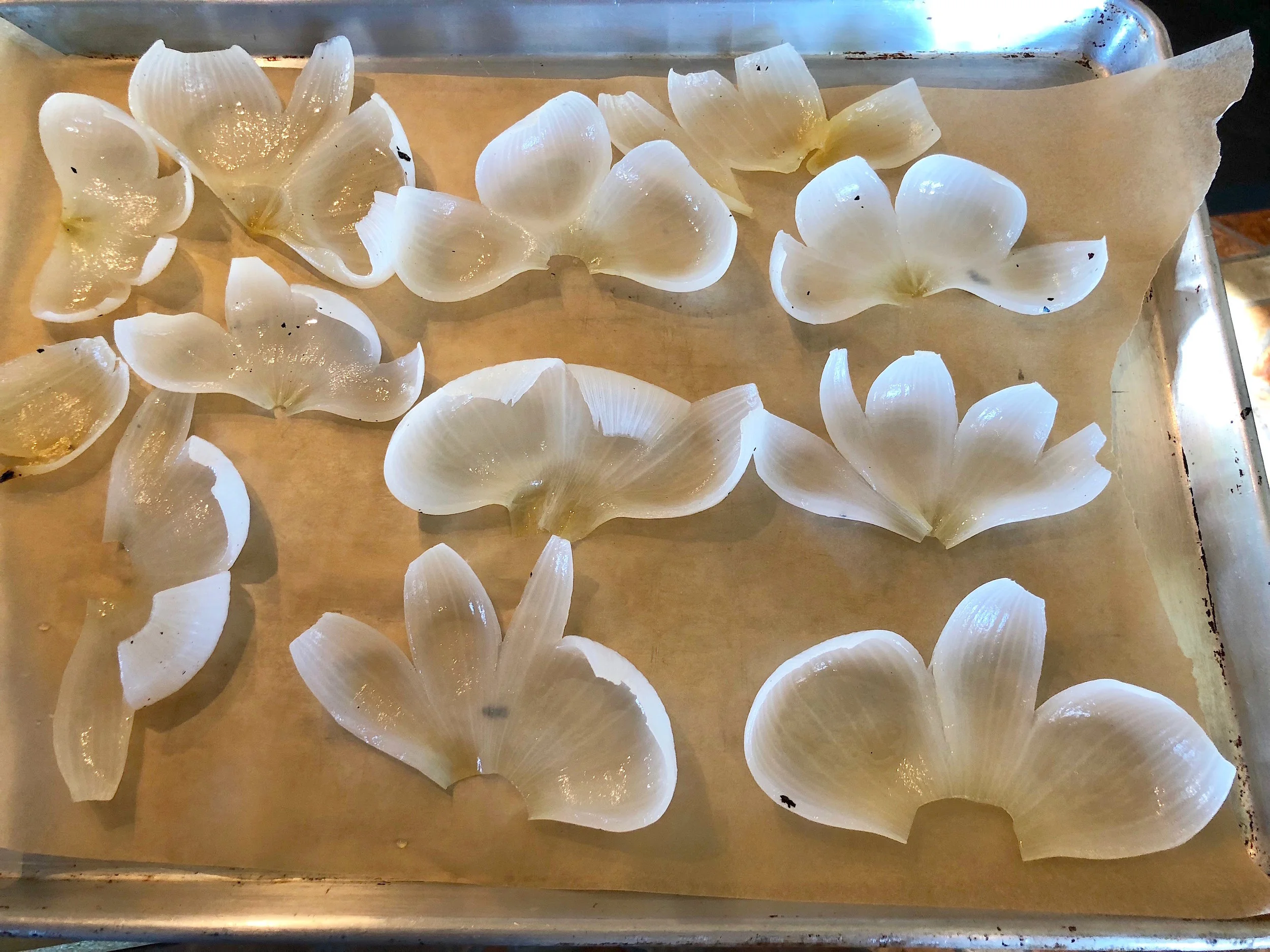 For the rest of the now cooked and peeled onion. Carefully remove one layer at a time. Each layer should open up like a flower