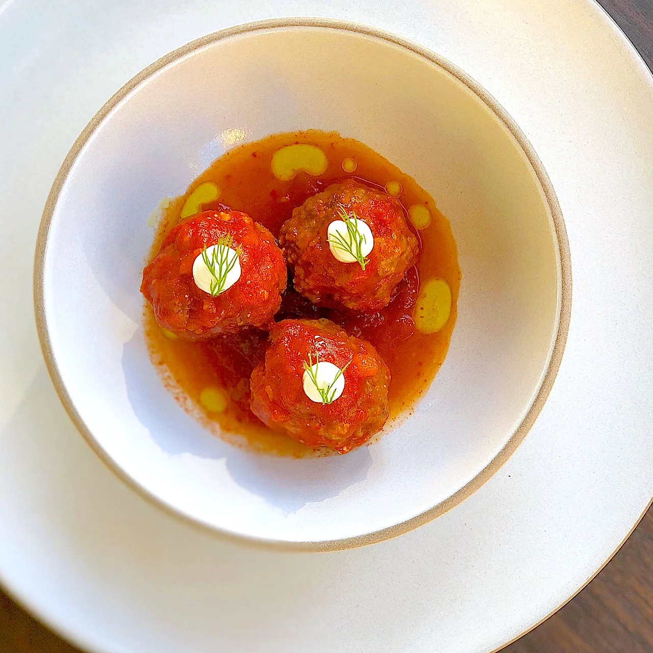 Simply add a few meatballs to a bowl with sauce. Top each meatball with yogurt. Garnish with dill, a drizzle of olive oil. Serve and enjoy!