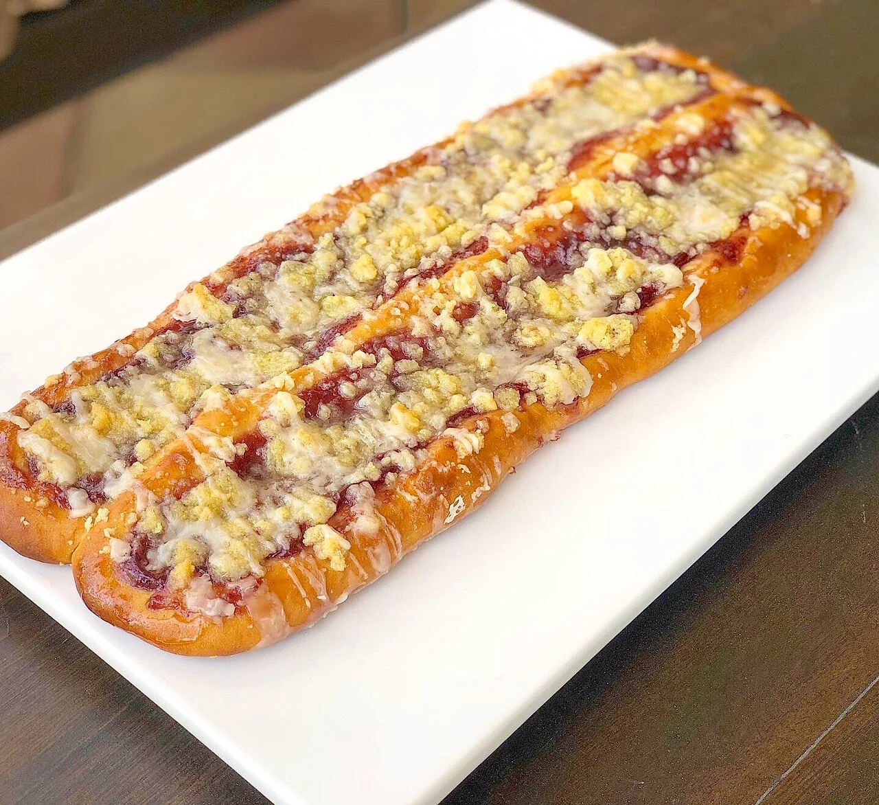 This recipe is all about childhood memories. My mom wasn’t an avid cook or baker. But she did cook often and bake when needed. My parents did a lot of entertaining over the years and I remember her working on all of those meals preparing for dinner guests. But as me and my brother started getting older and our appetites grew along with it, I felt like we were encouraged to fend for ourselves, so to speak. When she wasn’t up to baking or just wanted something sweet we turned to Entenmann’s to satisfy our sweet tooth. One of our special treats was entenmann’s raspberry danish. My brother and I could easily take down a whole entenmann’s raspberry danish in a day. I think everyone has these childhood memories of things their parents would give to them as treats or snacks that have a lasting effect on our urges. It might not be the healthiest but it sure was delicious. I wanted to recreate that childhood memory with this recipe. This is a basic enriched dough that can be used in all kinds of recipes including cinnamon rolls. Here is the recipe I hope you enjoy it!